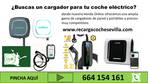 Llámenos 654 845 007 y nos encargamos de ofrecerte la mejor solución que se adapte a tus necesidades para un punto de carga vehículo eléctrico en Sevilla. Venta online de cargadores para coches eléctricos en Sevilla. Precios económicos y sin intermediarios.